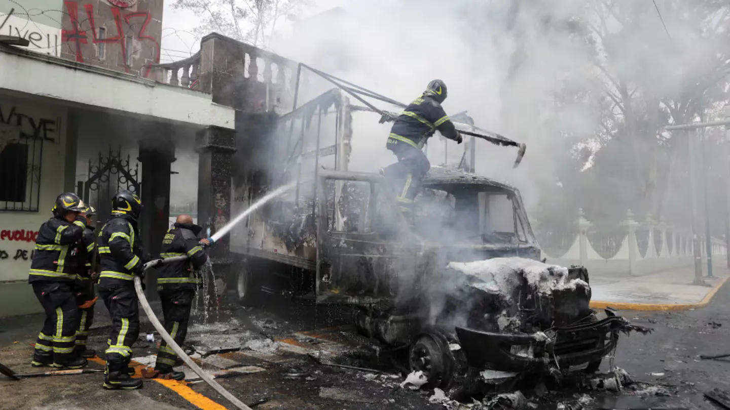Los manifestantes se retiraron luego sin que se reportaron heridos o detenciones, mientras los bomberos controlaban las llamas.