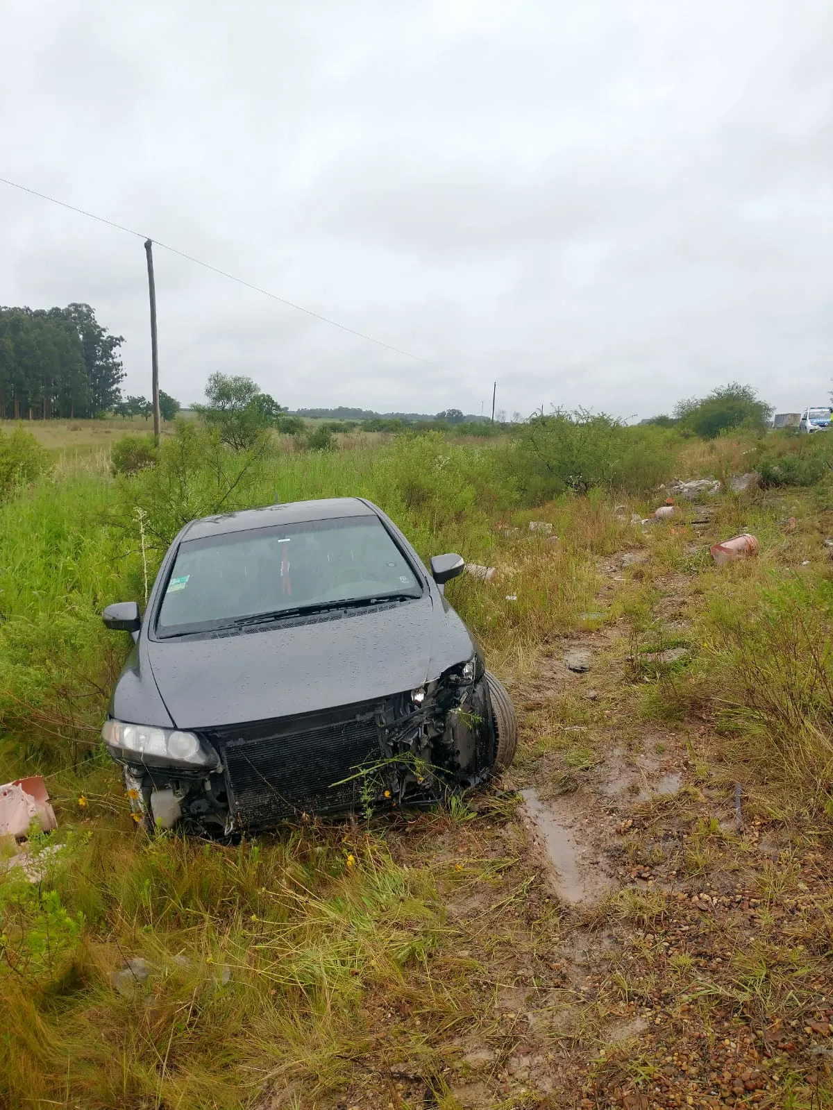 Un hombre de 42 años viajaba desde Merlo Bs As a Paraguay, en sentido Sur-Norte en su rodado Honda Civic, color gris, y manifiesta  que por la inclemencias y espejo de agua, perdió el control del mismo, despistando terminando en banquina, este con daños materiales sin lesionarse.