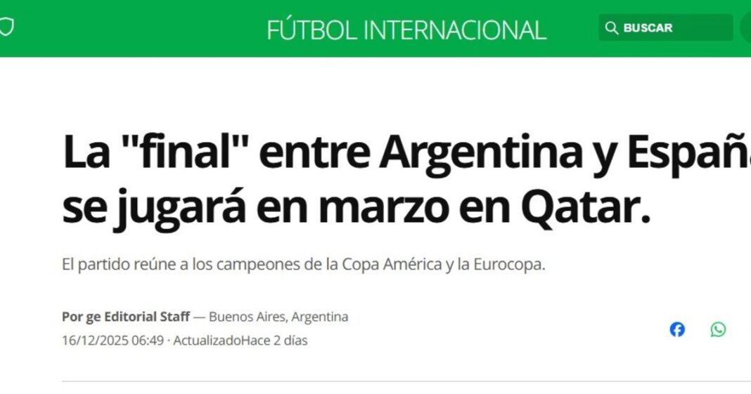 Globo Esporte resalta la Finalissima como «final».